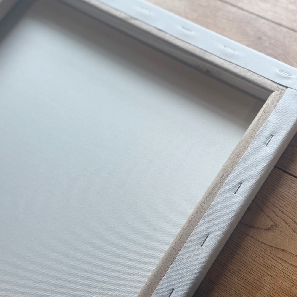 37mmの太めの木枠に綿化繊布を釘打ちした重厚感のある仕上がり。