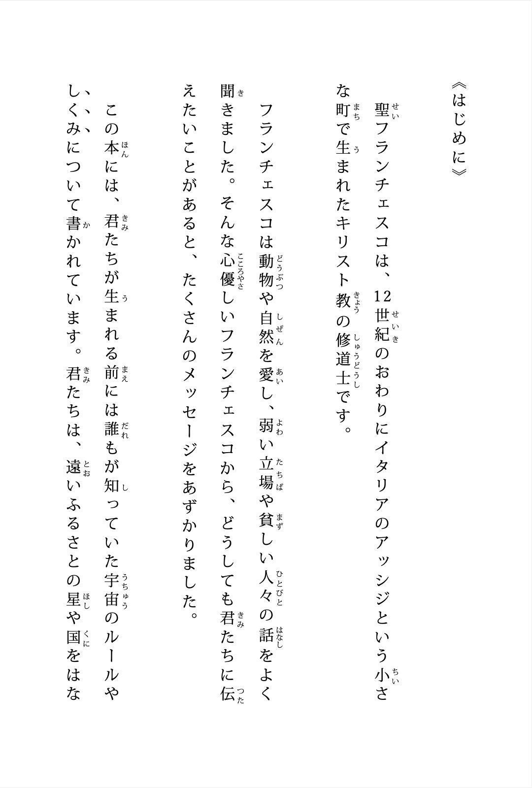 本書は、著者が聖フランチェスコの意識を通して伝える日本の子供たちへのメッセージ集です。(生前のフランチェスコが残した言葉ではありません)